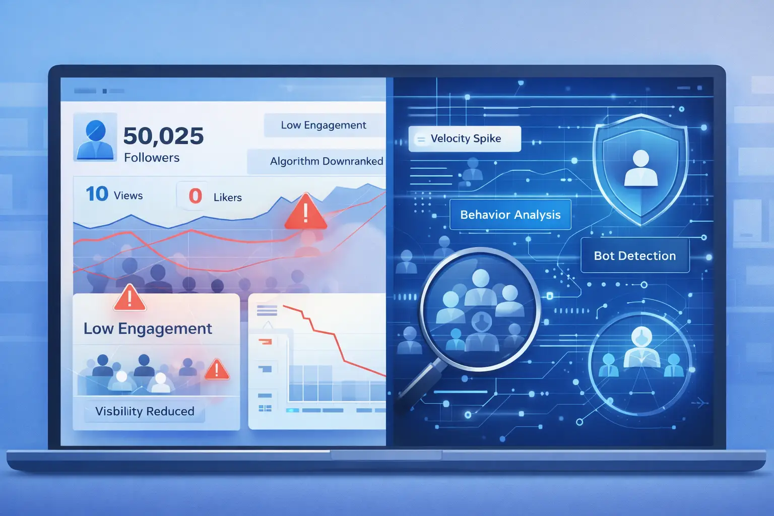 The platform's AI notices when hundreds of followers appear overnight with zero engagement activity. This triggers immediate investigation and potential account restrictions.