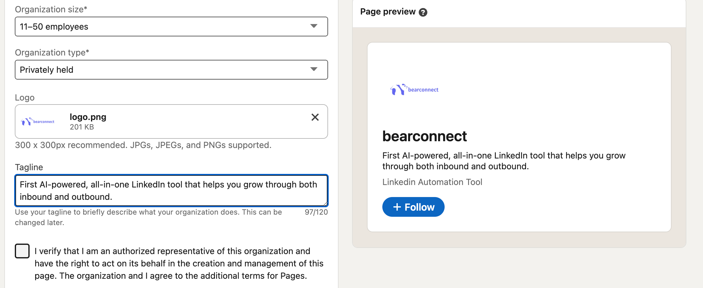 - A complete page increases trust and unlocks LinkedIn Ads, analytics, and automation capabilities