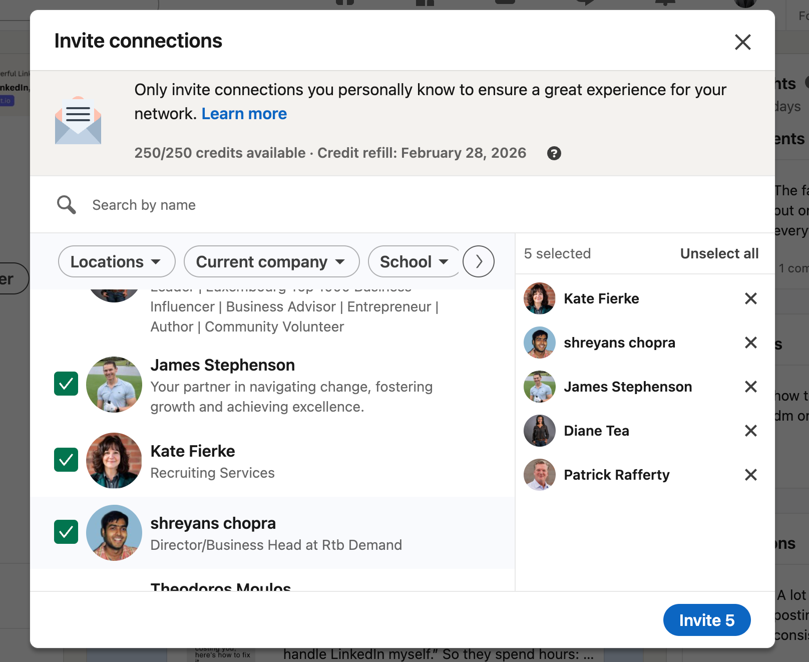 LinkedIn allows you to invite up to 100 connections at once. Use this feature immediately after launch.