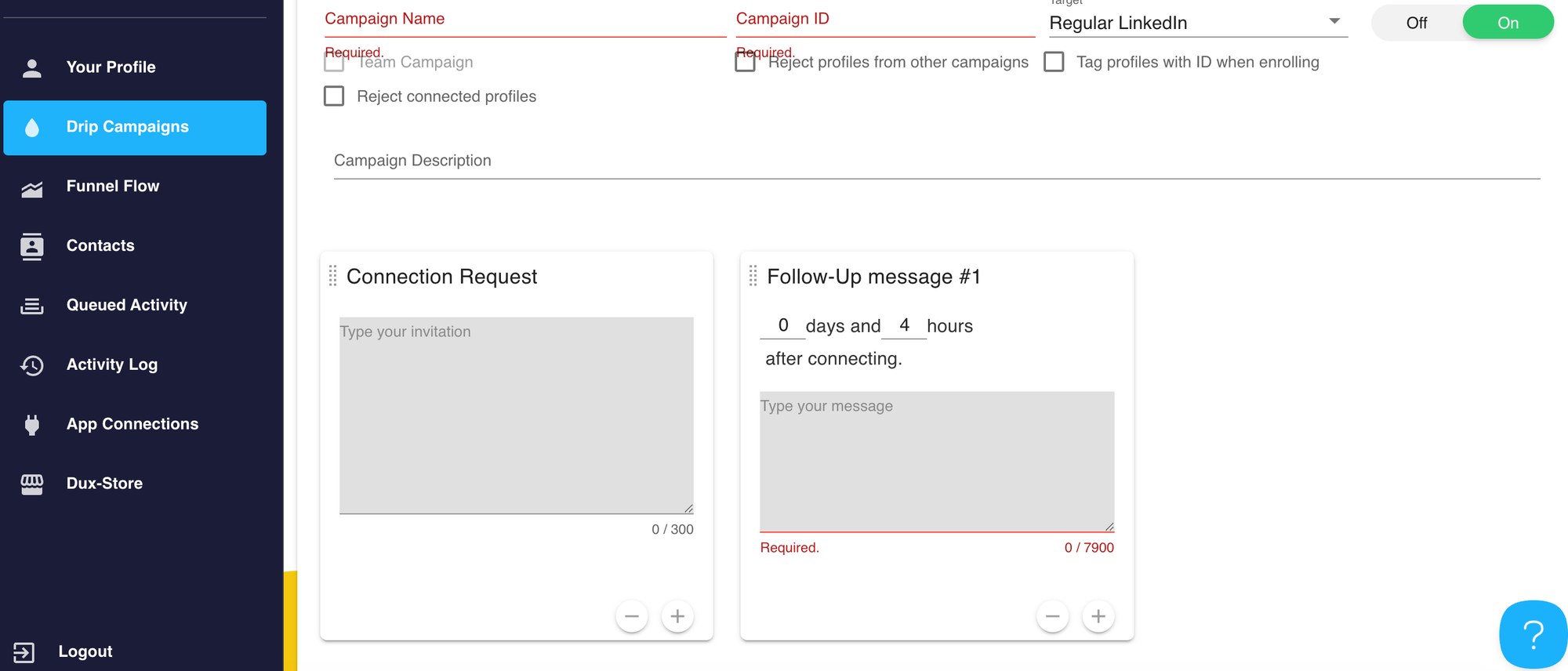 However, campaigns only run when your browser is open and LinkedIn tab active.