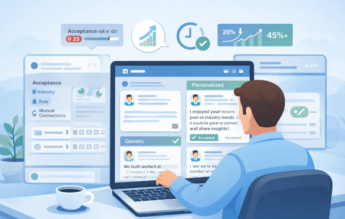 One study found switching from 100 generic daily requests to 25 personalized ones increased acceptance rates from 20% to 45%. Quality targeting always beats volume approaches.