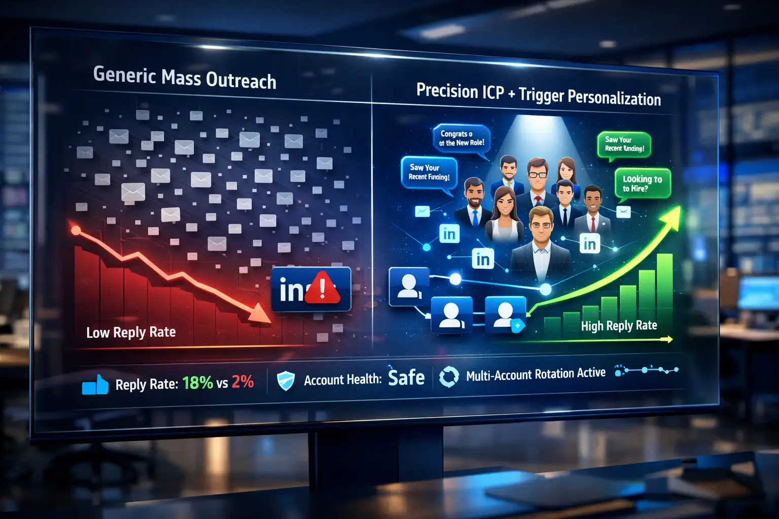 The fix: distribute outreach across multiple LinkedIn accounts.