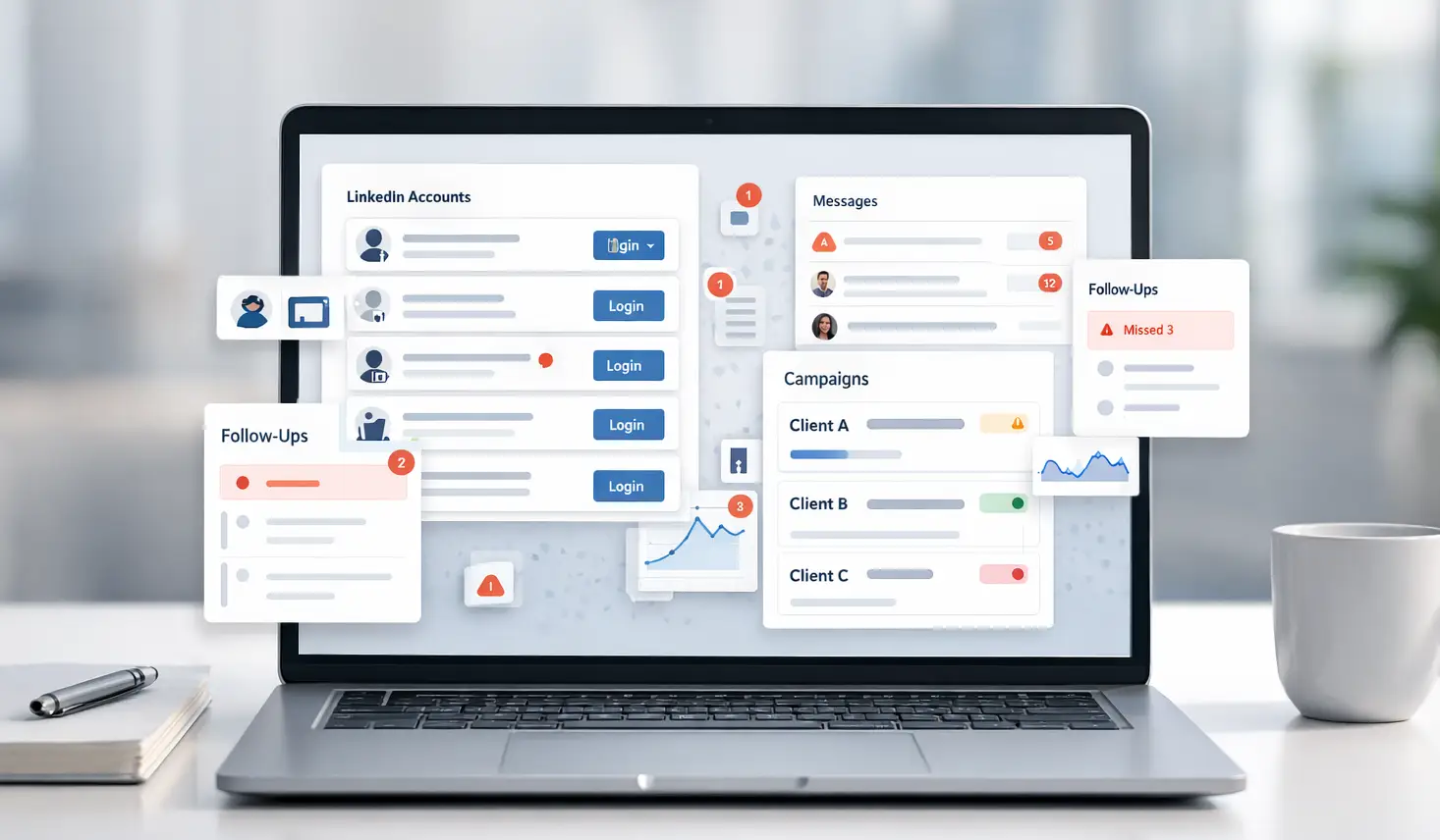 Manually managing even 5 client LinkedIn accounts breaks down fast. Messages scatter across profiles, follow-ups get missed, and no one has a clear view of what is working.