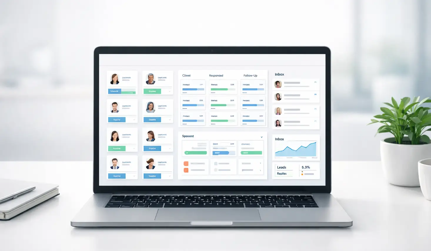 - Analytics layer - Per-client dashboards track acceptance rates, reply rates, and lead conversions.