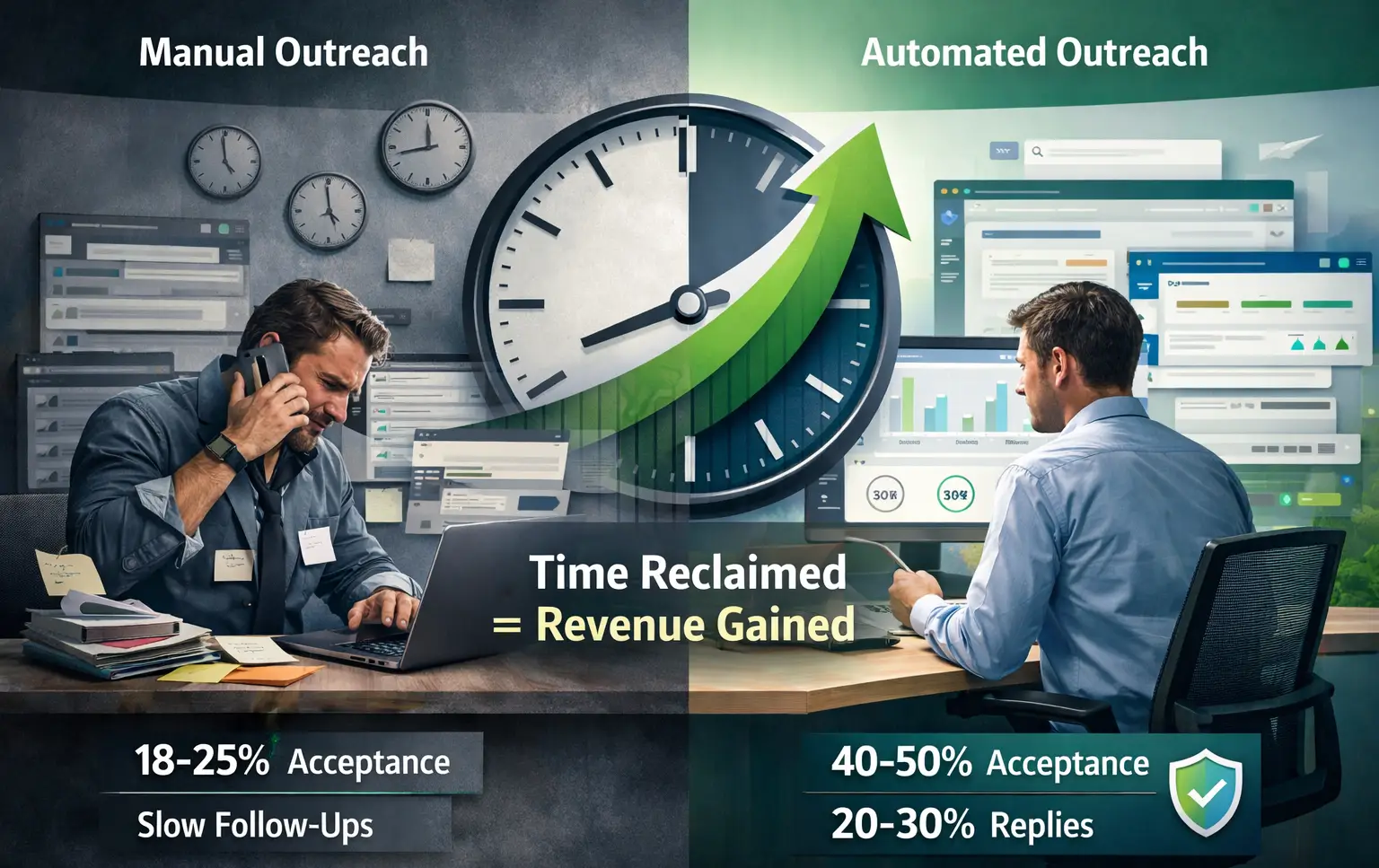 - Manual LinkedIn outreach consumes 40+ hours monthly on repetitive tasks