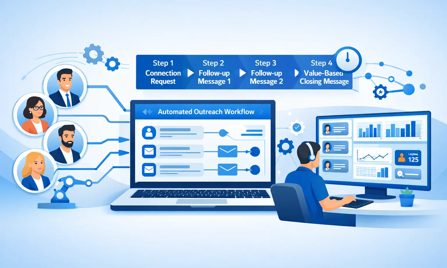 - LinkedIn outreach automation lets one person manage what previously required a full team
