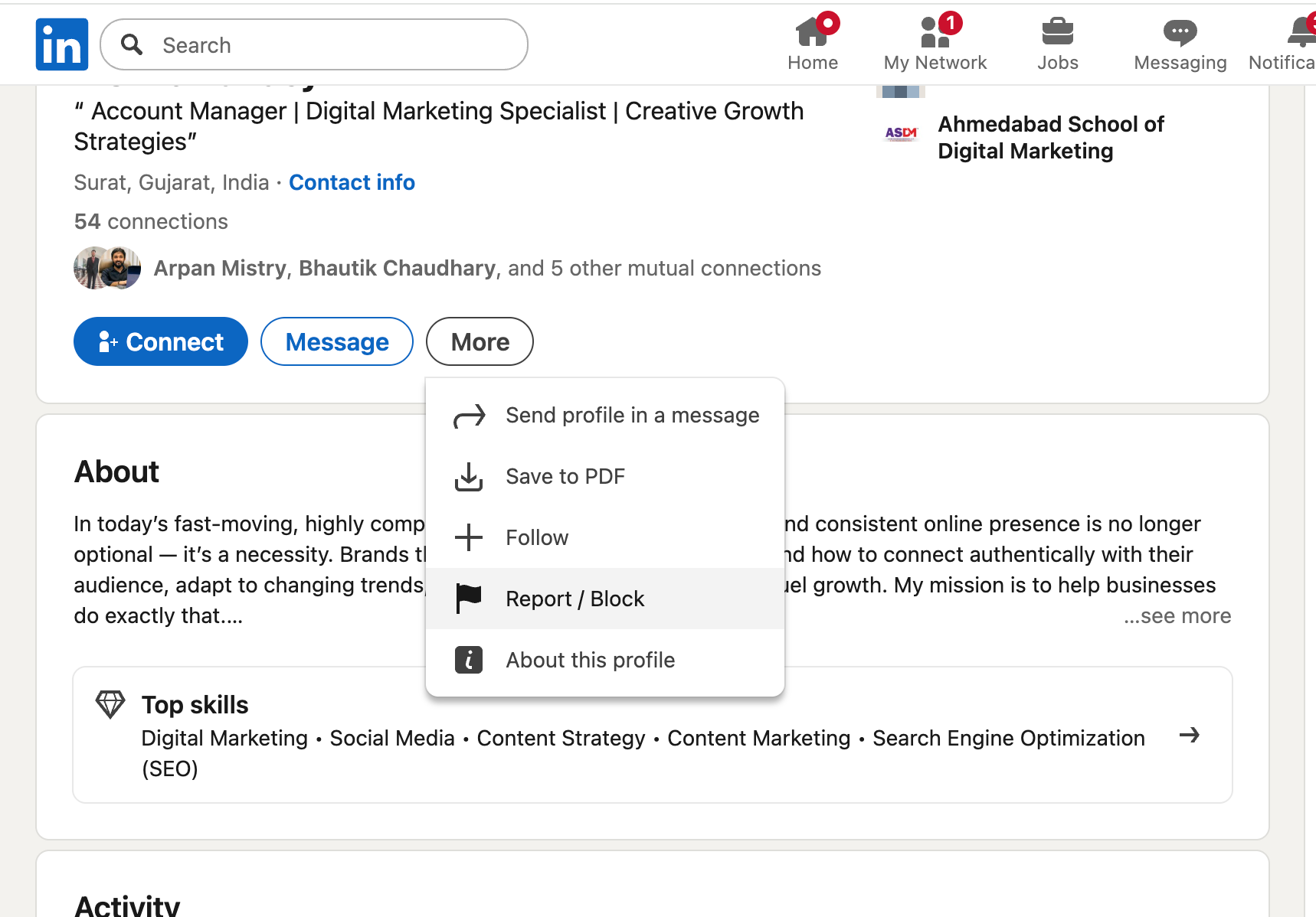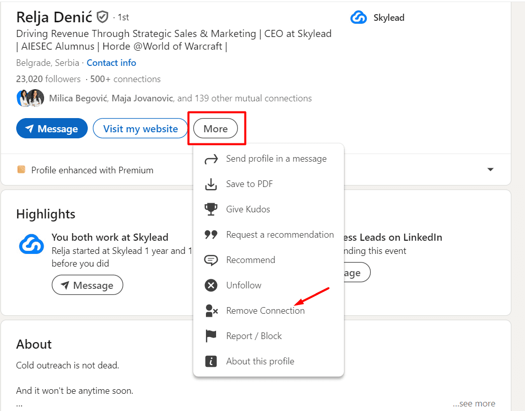- Navigate to the person's profile using LinkedIn search