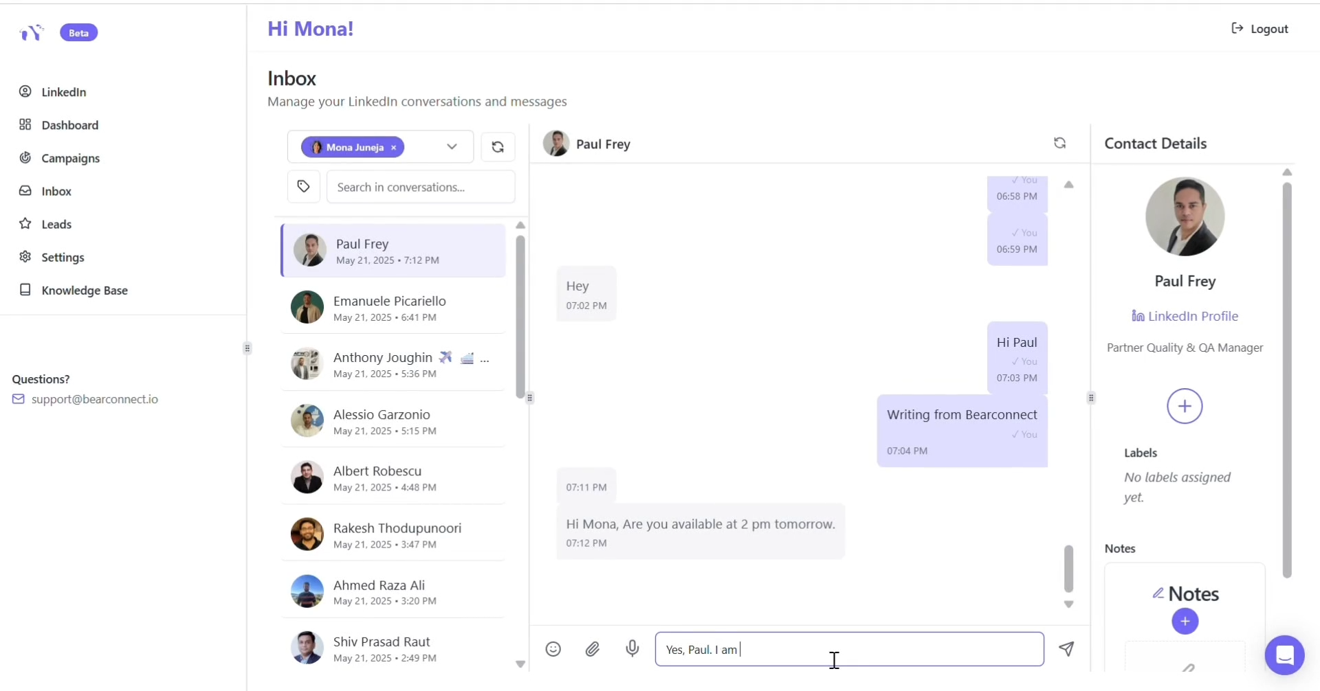 Bearconnect helps professionals manage LinkedIn outreach, content scheduling, and inbox organization without crossing into spam territory.