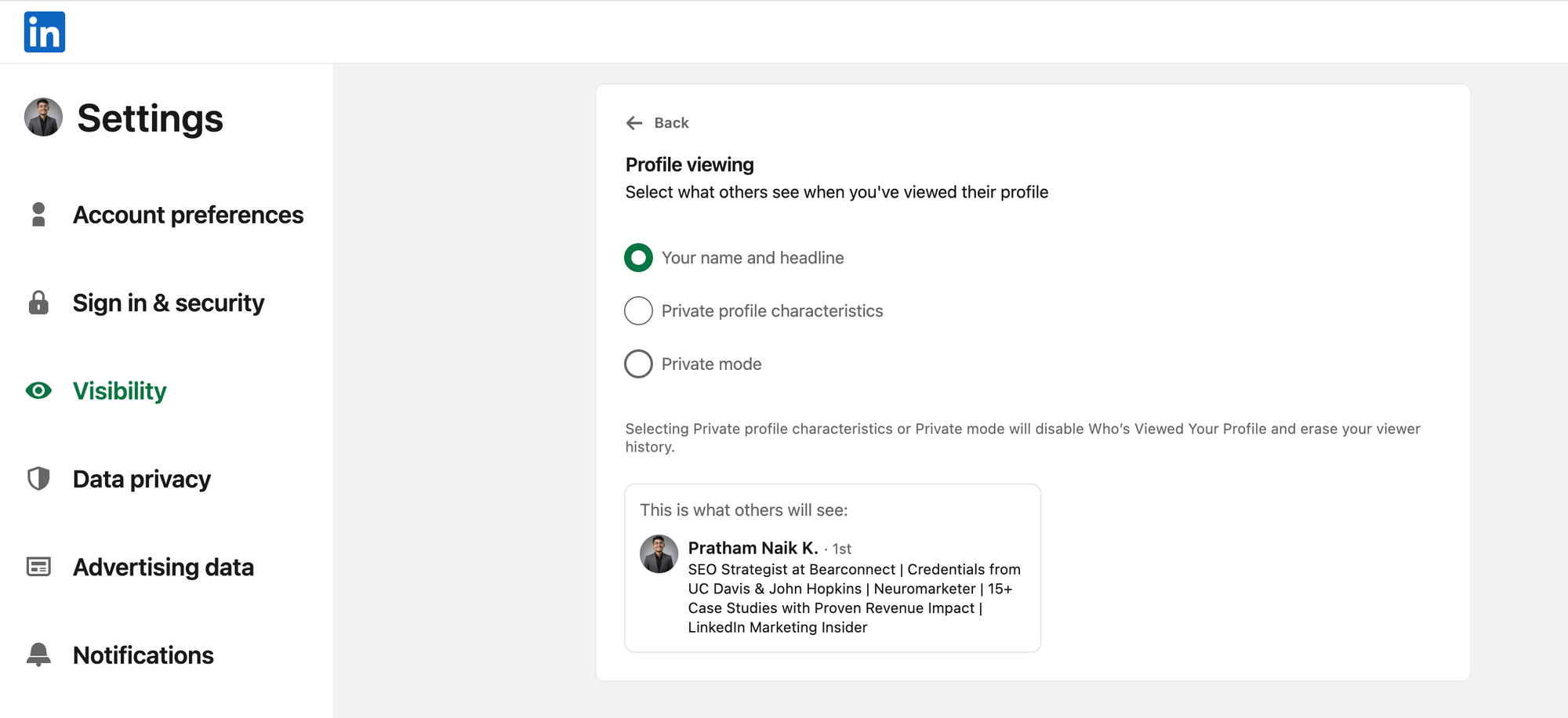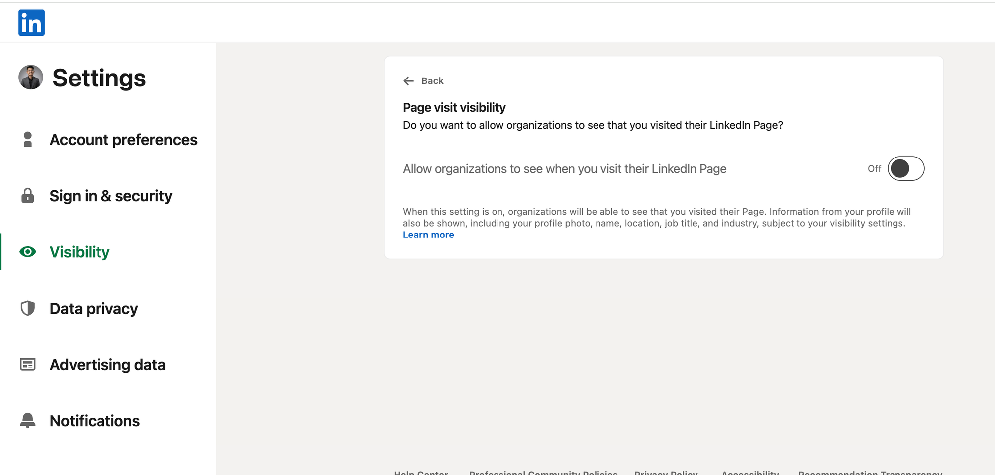 Learn more about who can see your profile visits and LinkedIn's visibility settings.