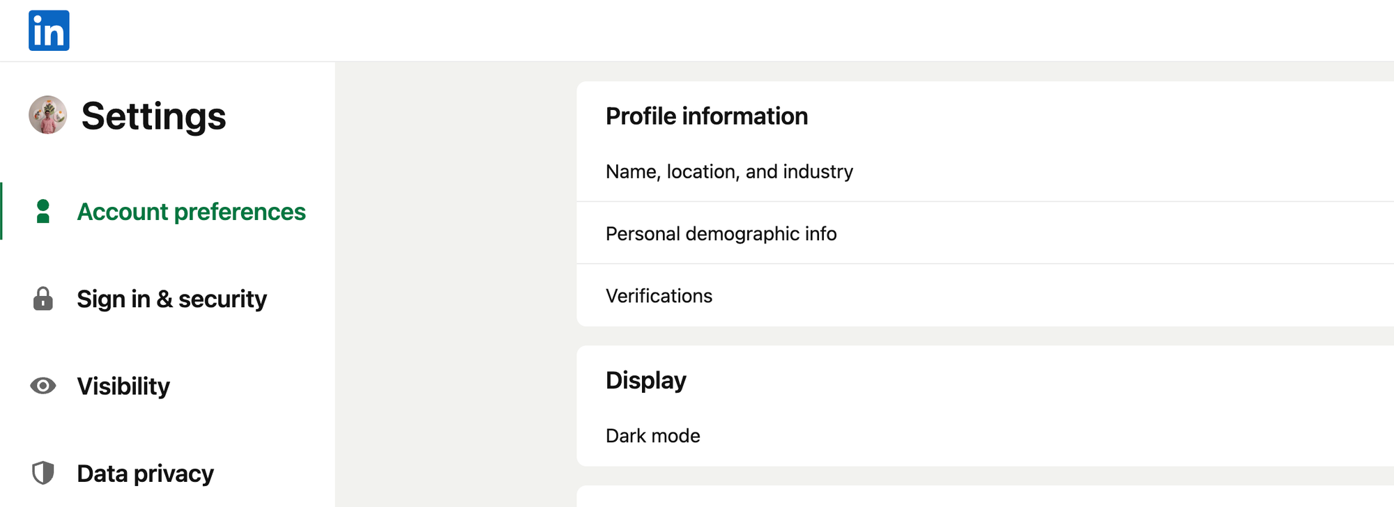 - In the left sidebar, click Account preferences