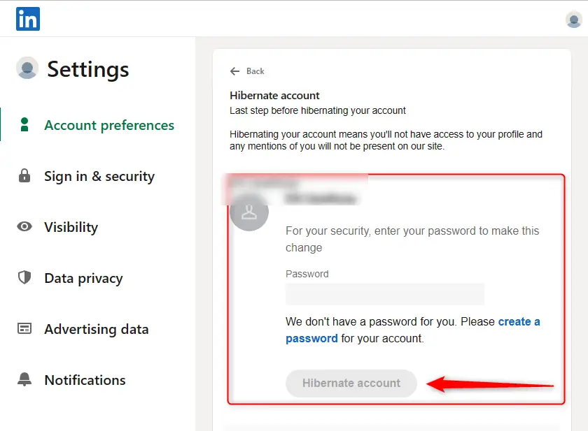 Hibernating your LinkedIn account puts your profile into a temporary invisible state.