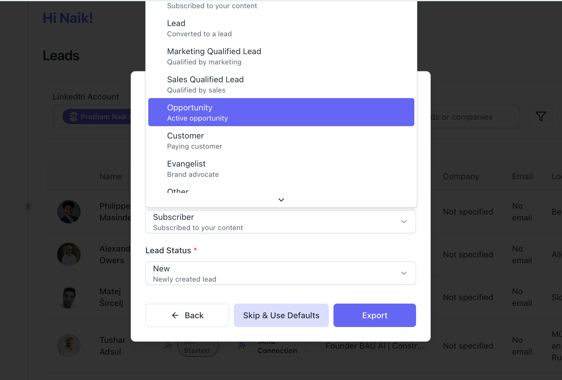 Pro Tip: Your field mapping preferences save automatically. The next export will pre-fill your previous selections.