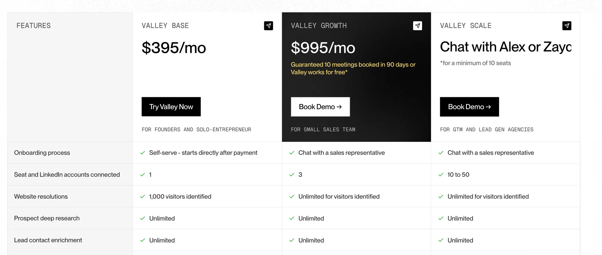 Valley offers three main pricing tiers, though exact costs aren't publicly listed on their website: