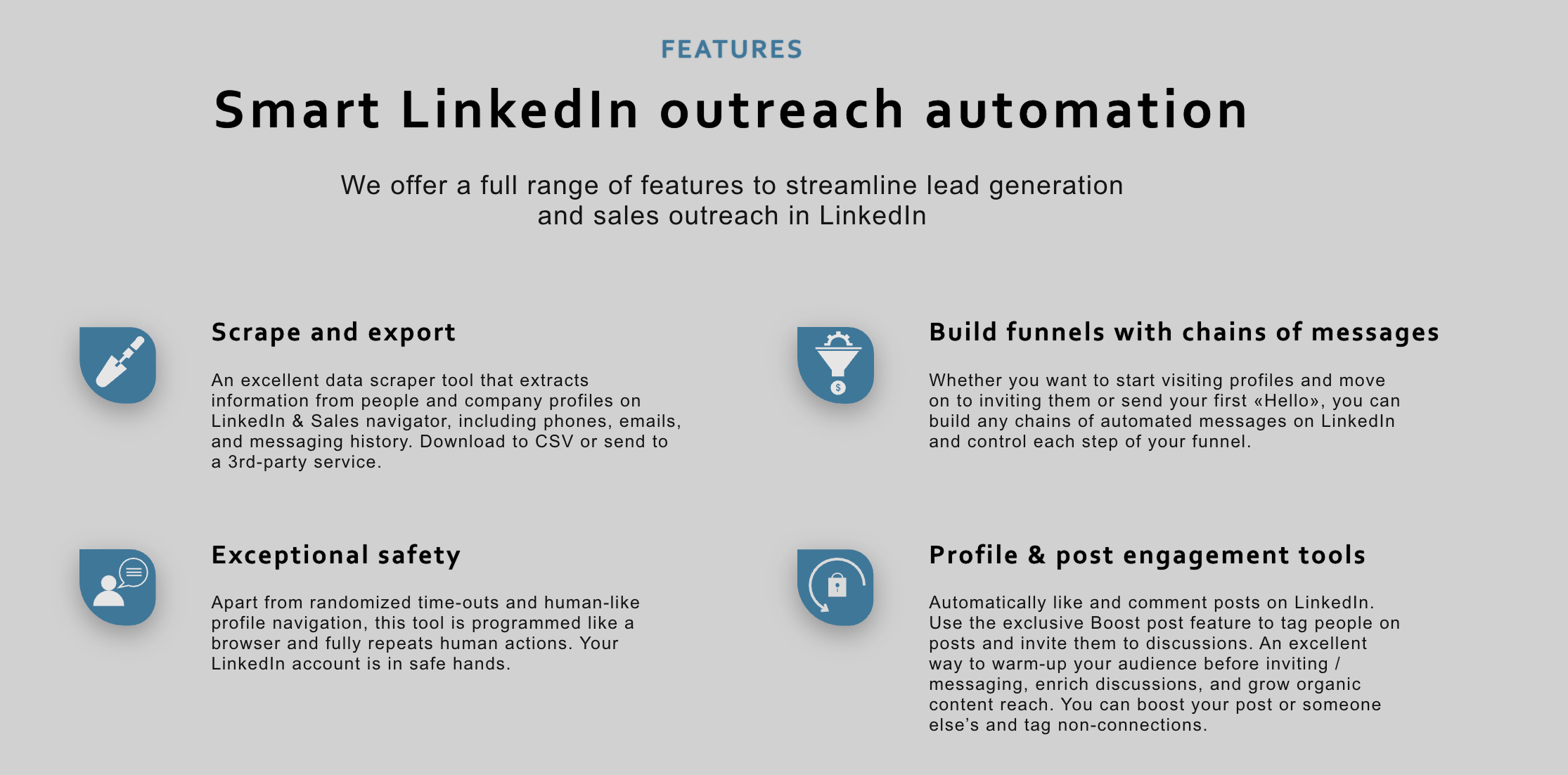 Linked Helper exclusively handles outbound automation. It offers zero capabilities for: