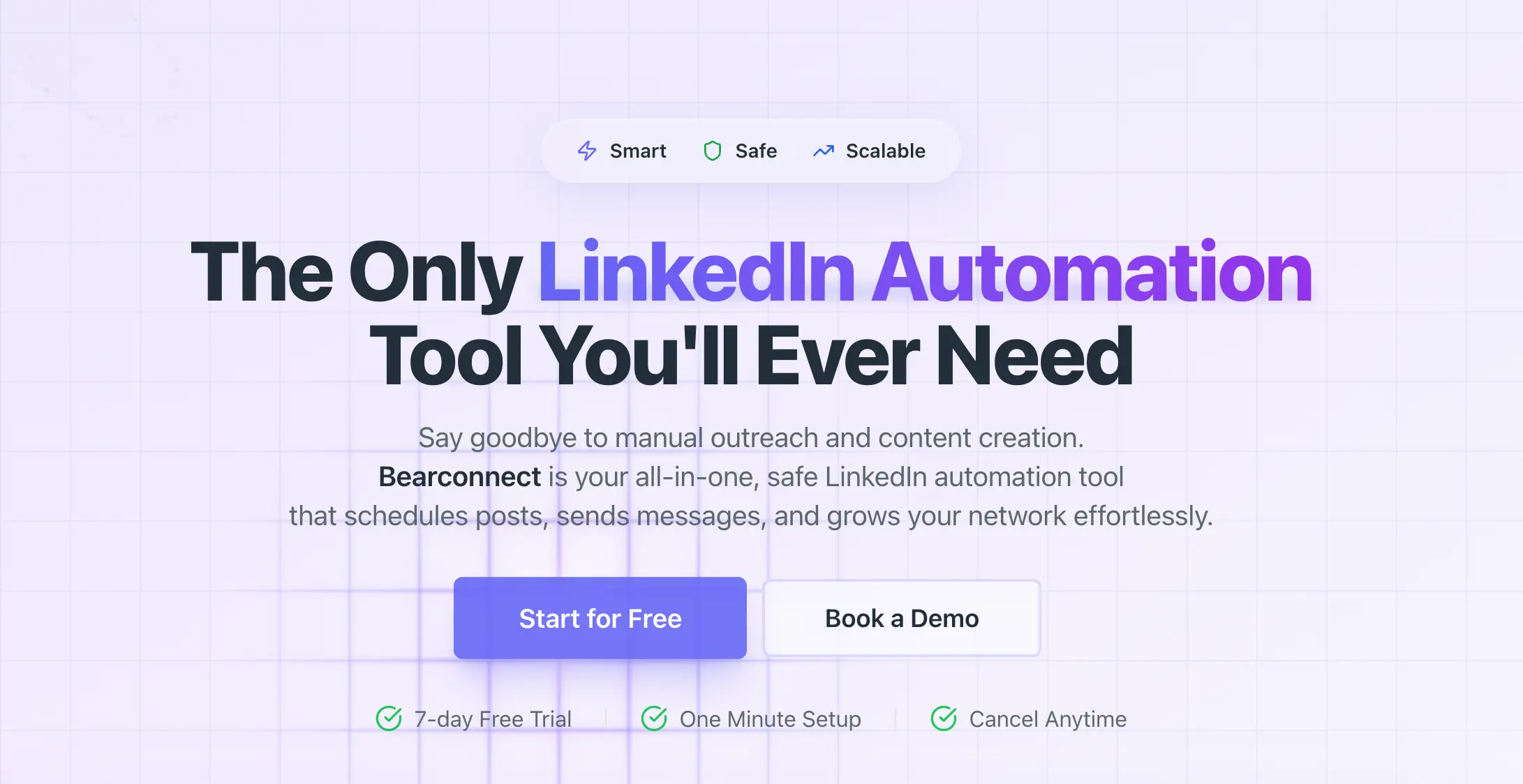 - Bearconnect offers a 7-day free trial at $67/month per LinkedIn account ($57 for 5+ accounts)