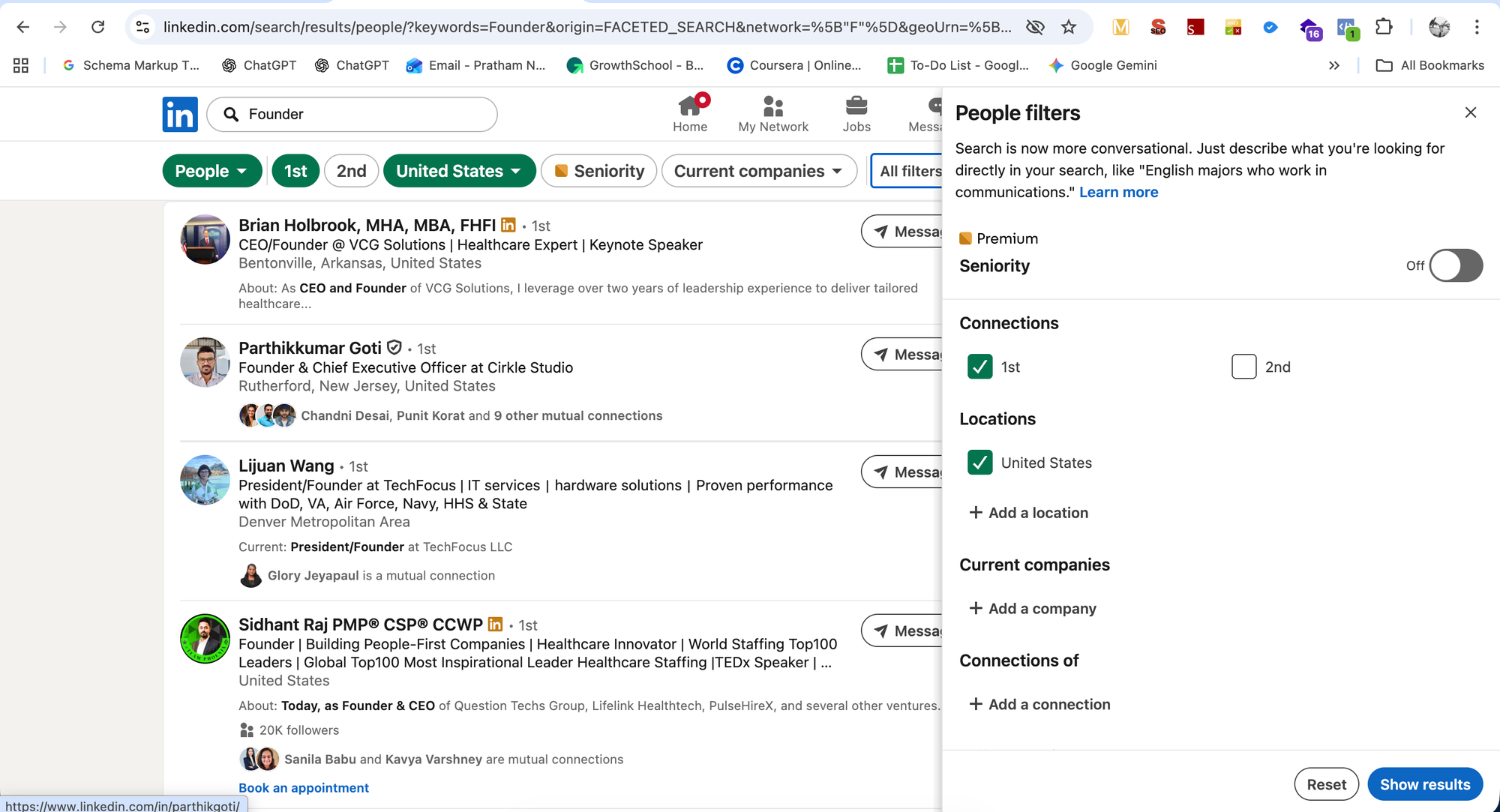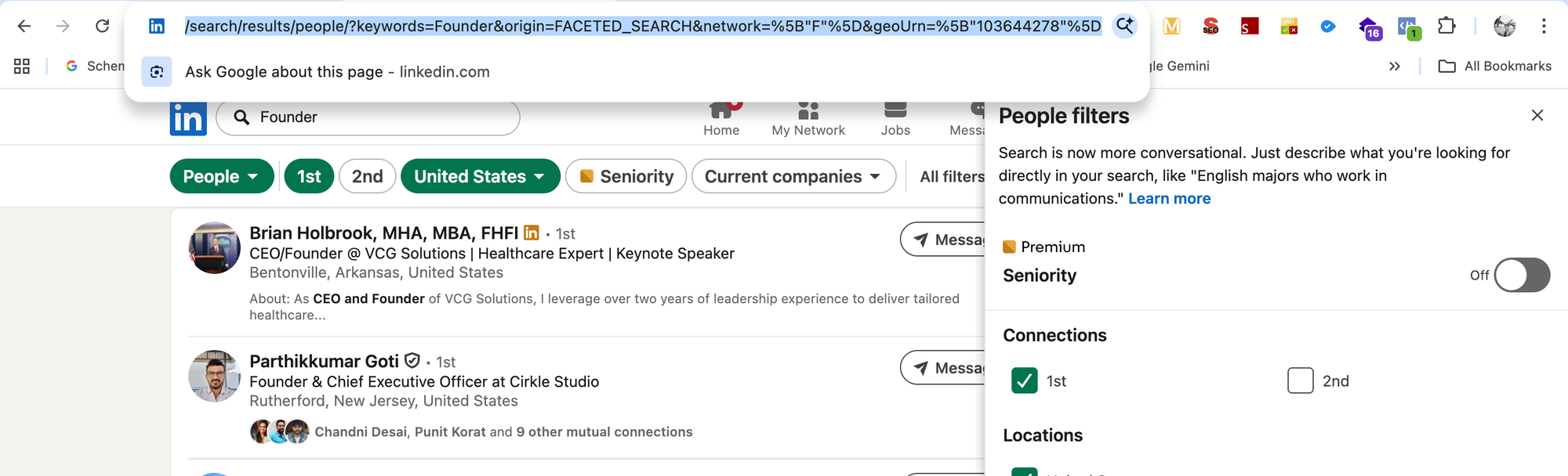 Open LinkedIn in a separate tab and use search filters to find your ideal prospects: