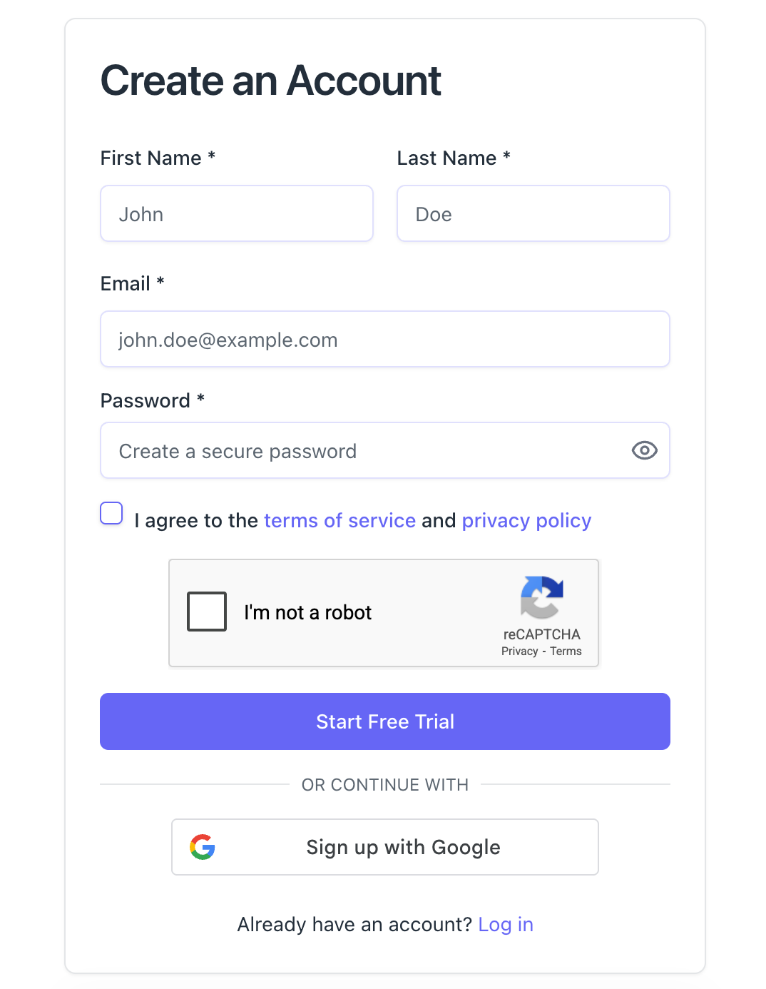 You can sign up with email or use "Signup with Google" for faster onboarding.