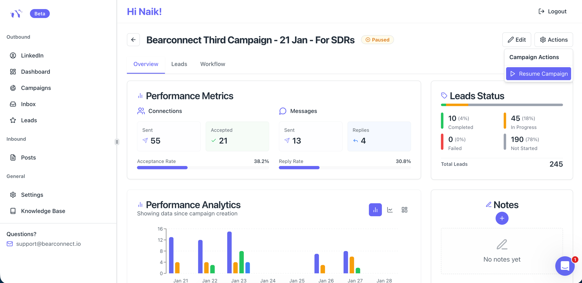 Bearconnect's real-time performance tracking helps you identify top-performing campaigns and scale them while pausing underperformers.
