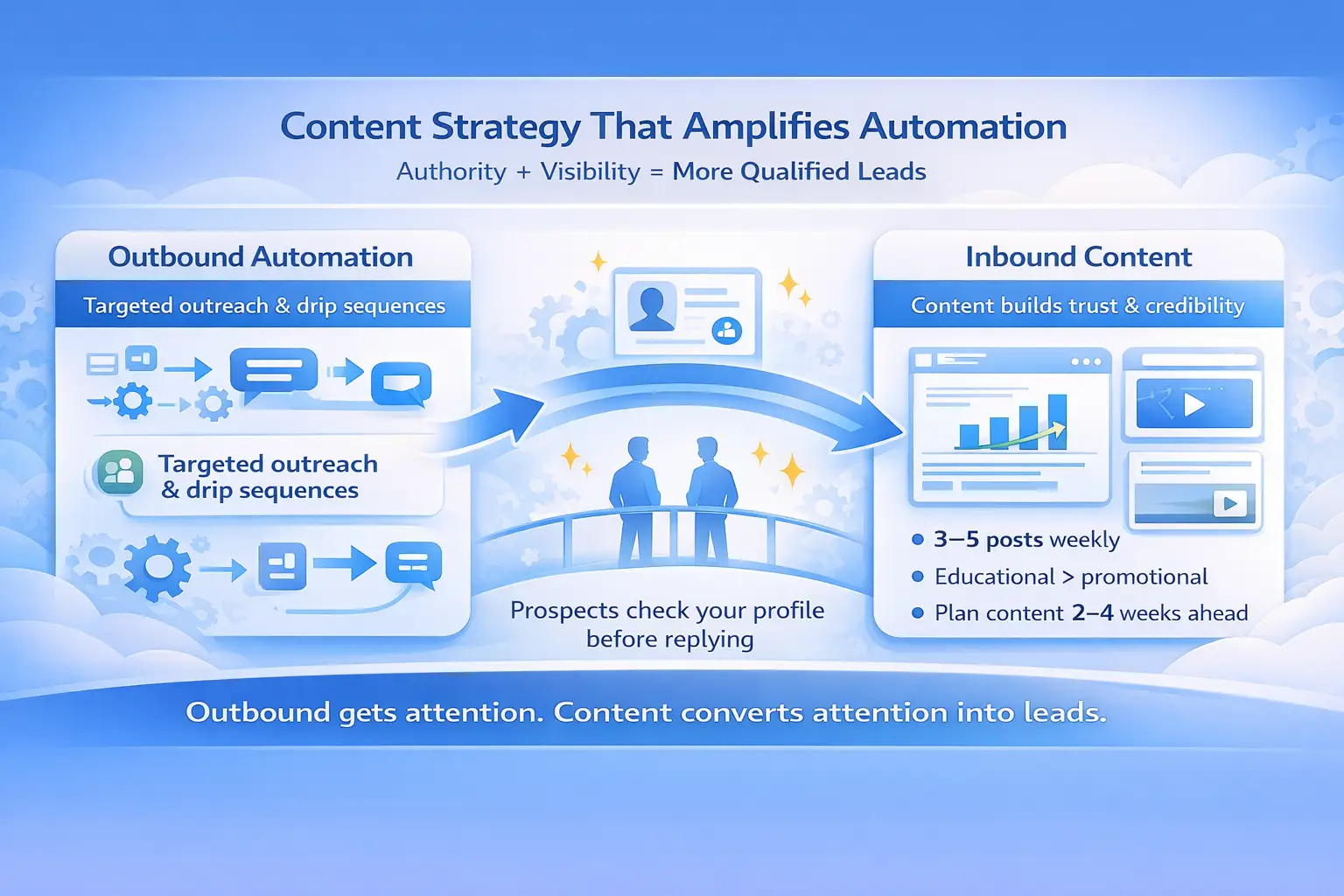 - Combining outbound automation with consistent content creates an always-on lead generation system