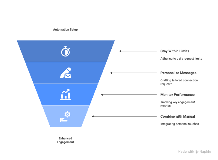 - For Free Accounts: Limit automation to 20-25 connection requests daily.