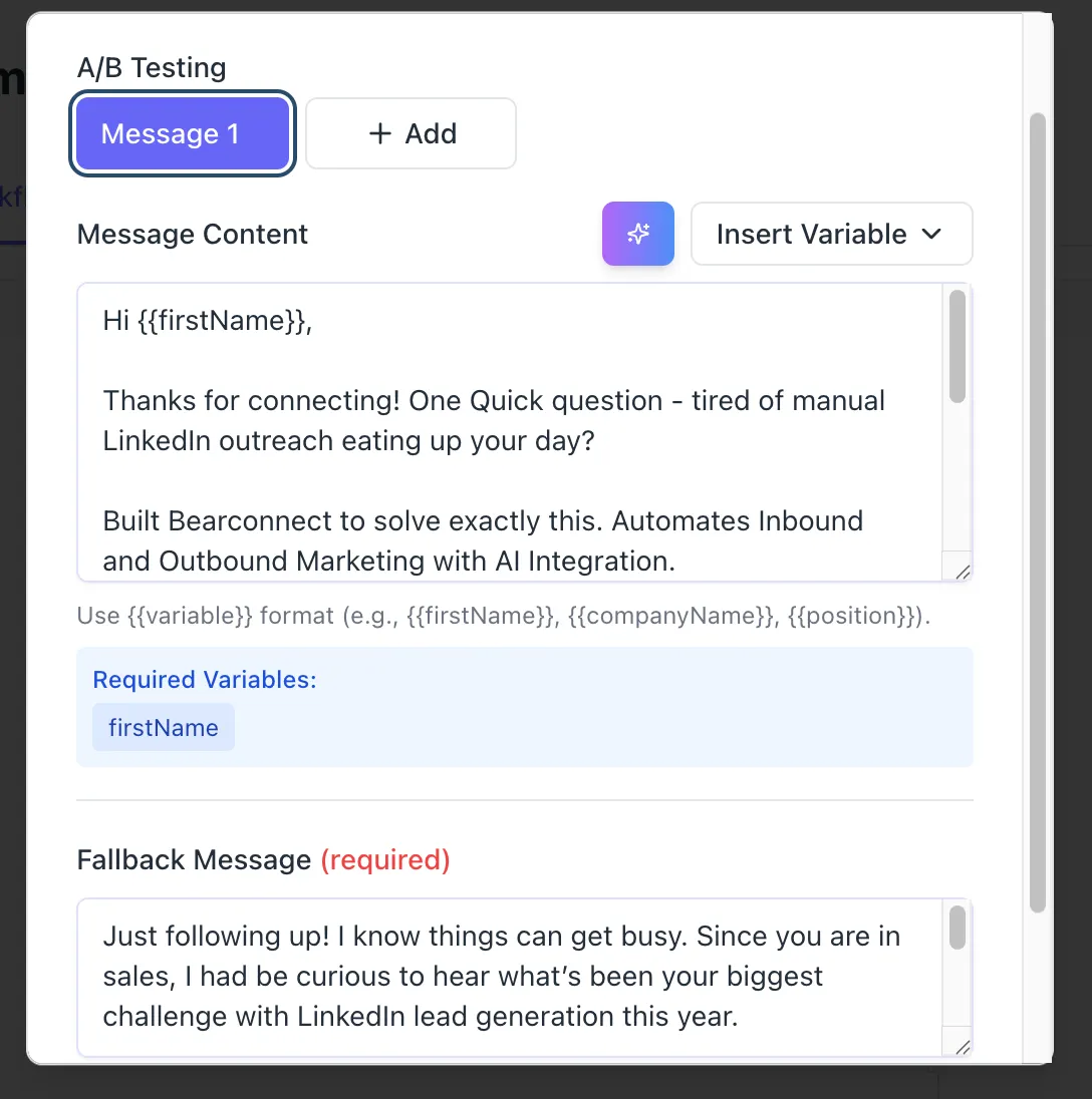 - Missing Personalization Variables: Automation templates must include dynamic fields for name, company, role, or recent activity. Messages without customization elements achieve 32-48% lower response rates.