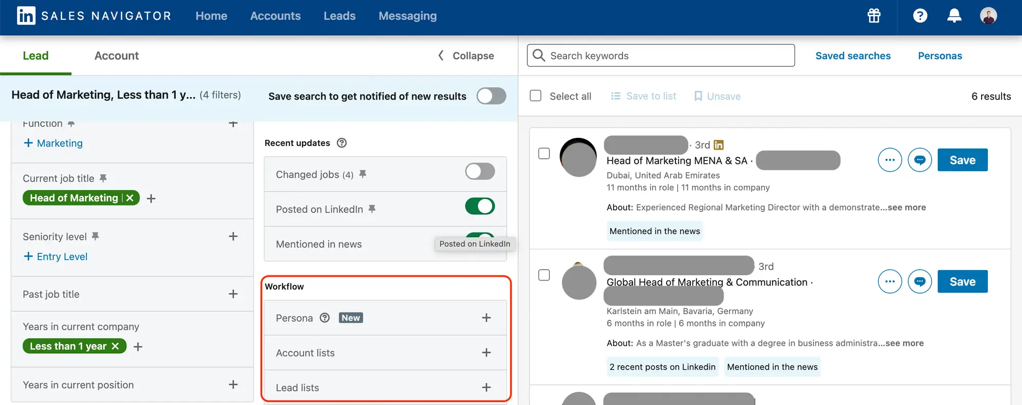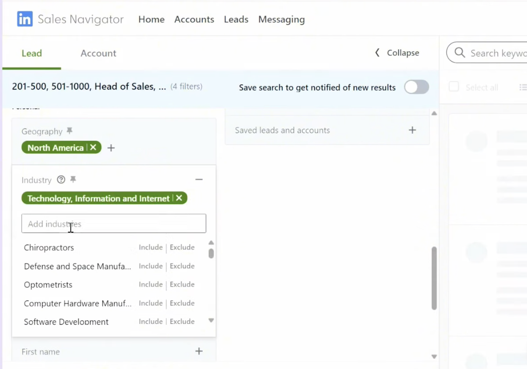 - Apply your filters in Sales Navigator Lead Search