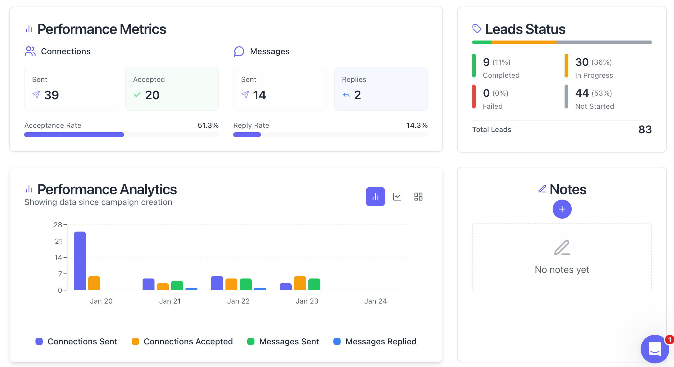 - Advanced analytics showing connection acceptance and response rates