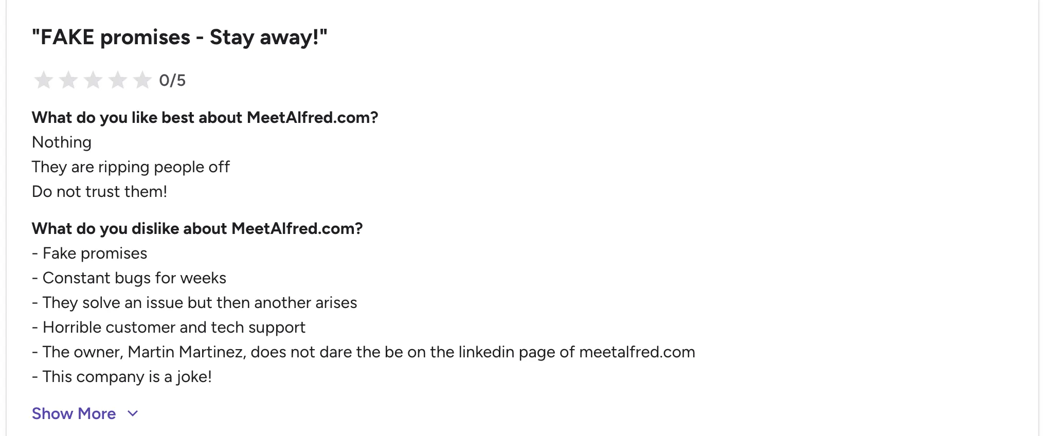 Overall, the perception from reviews is that Meet Alfred is powerful but not risk free.