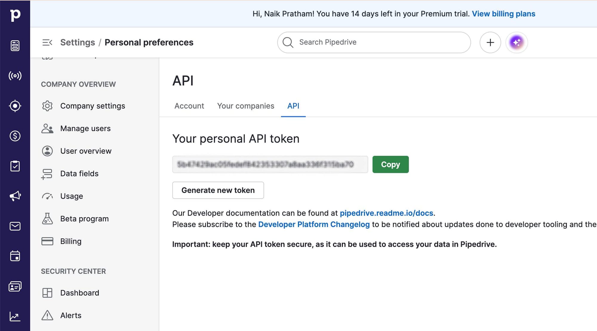 Step 1: Get Your Pipedrive Personal API Token