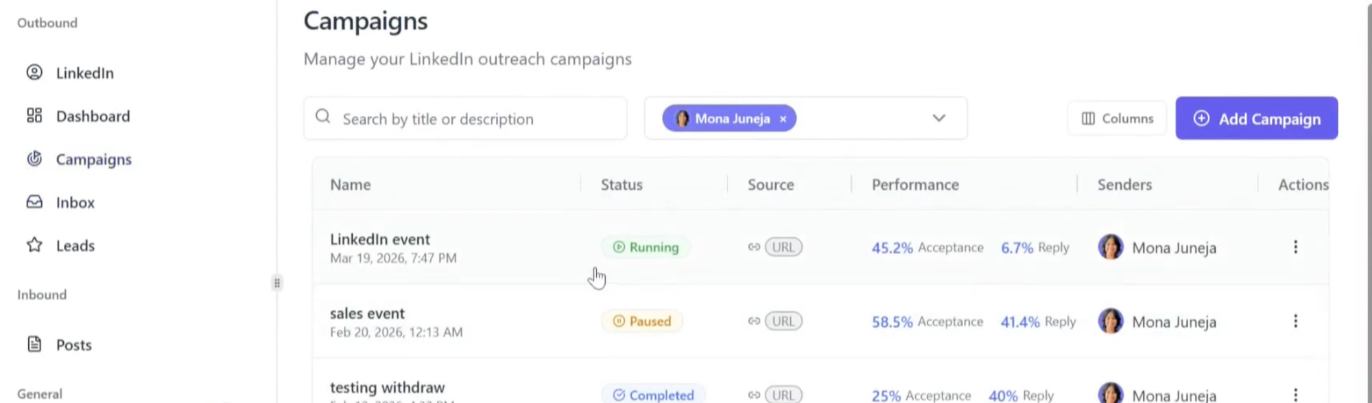 - Subject: Campaign name plus event type (example: "LinkedIn connection request sent via Q1 Outreach")