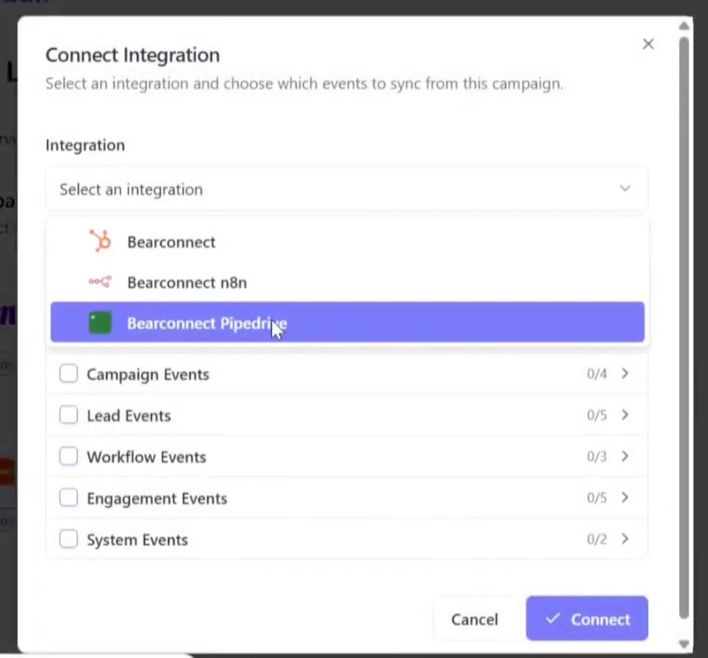 Step 2: Connect Pipedrive in Bearconnect
