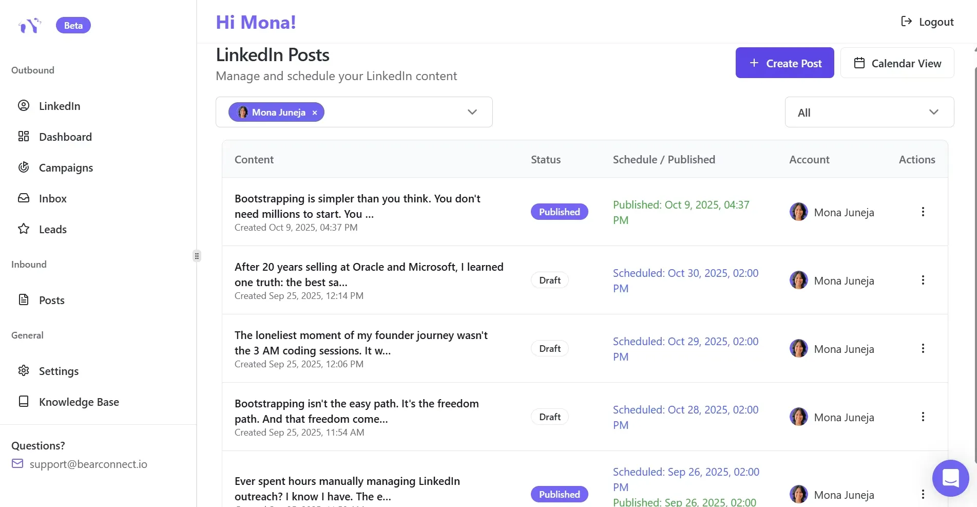 For founders, agencies, and sales teams, this structure makes it easy to scale content and outreach across multiple profiles without juggling several tools.