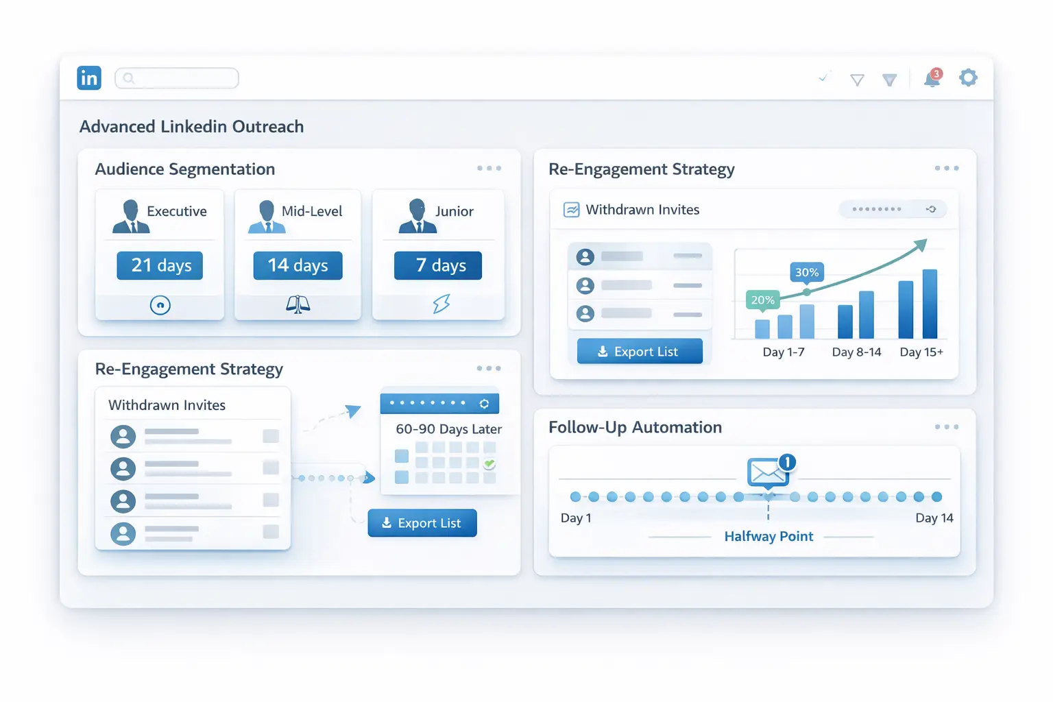 This feature is essential when scaling your LinkedIn automation over 90 days across multiple campaigns.