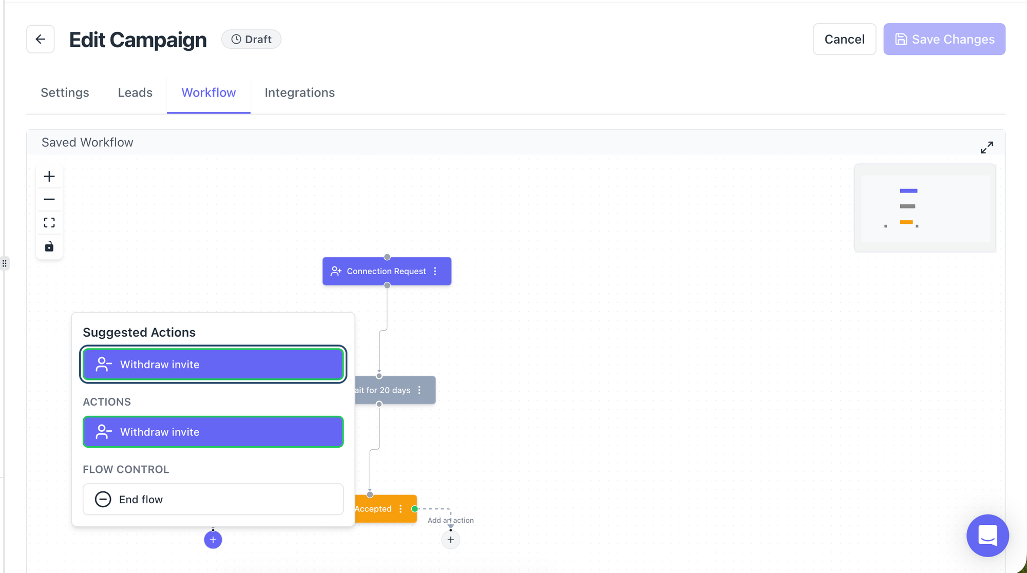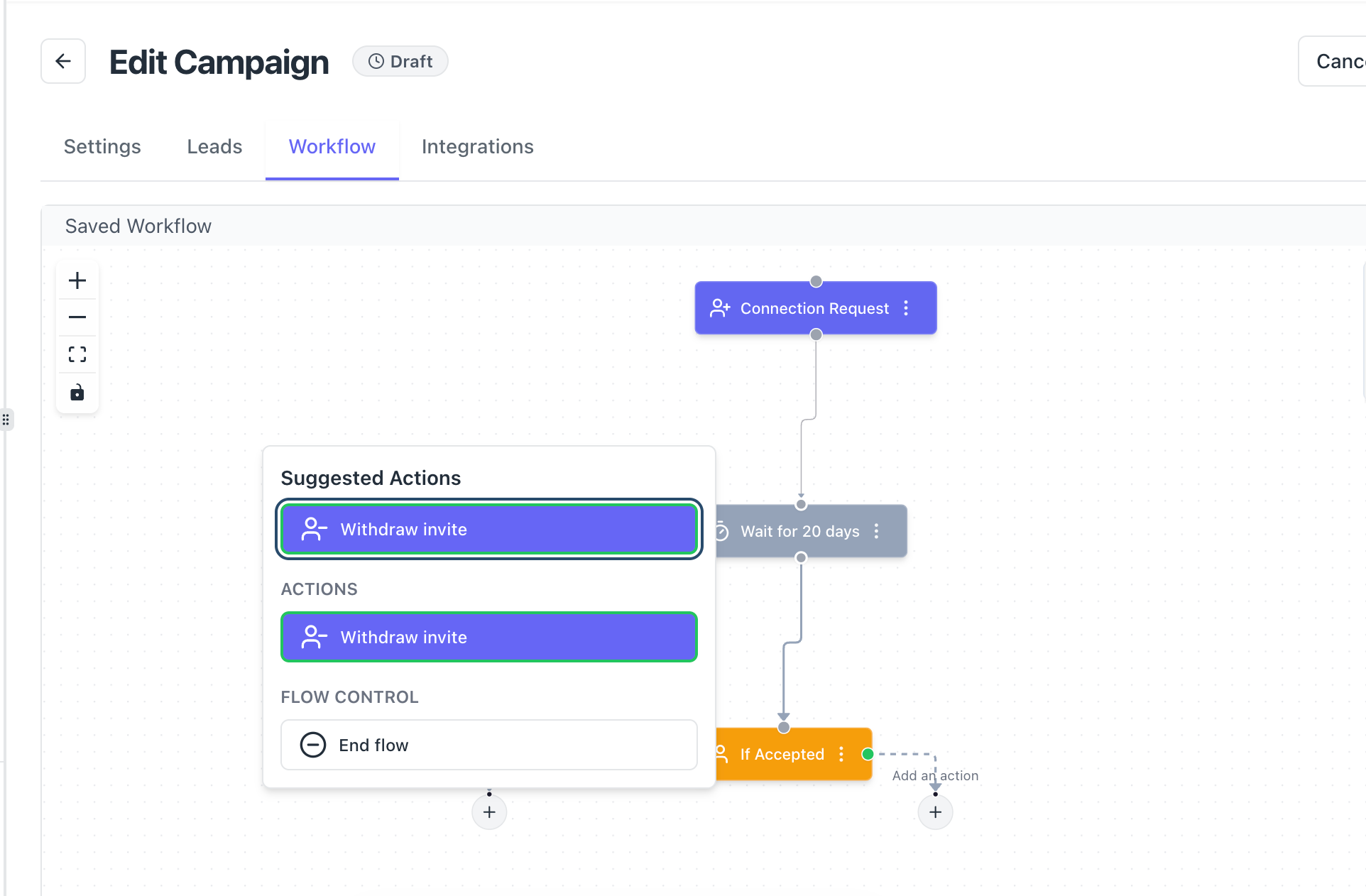 - The Withdraw Invite toggle is turned on in your workflow